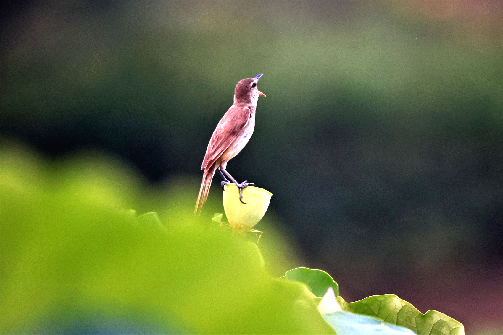 개개비가 연밥위에서 짝을 찾아 노래하네요