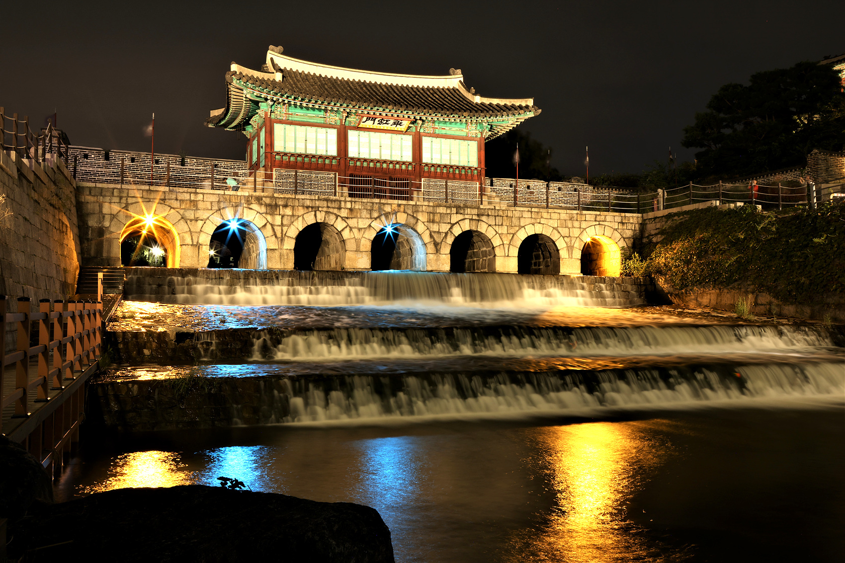 화홍문 밑으로 흐르는 냇물을 장노출로 담아 보았습니다