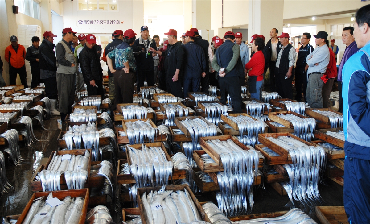 제주 갈치 경매 모습임니다.