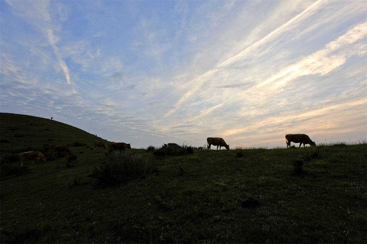 백약이 오름의 아침 방목한 소들과 함께 담아봅니다.