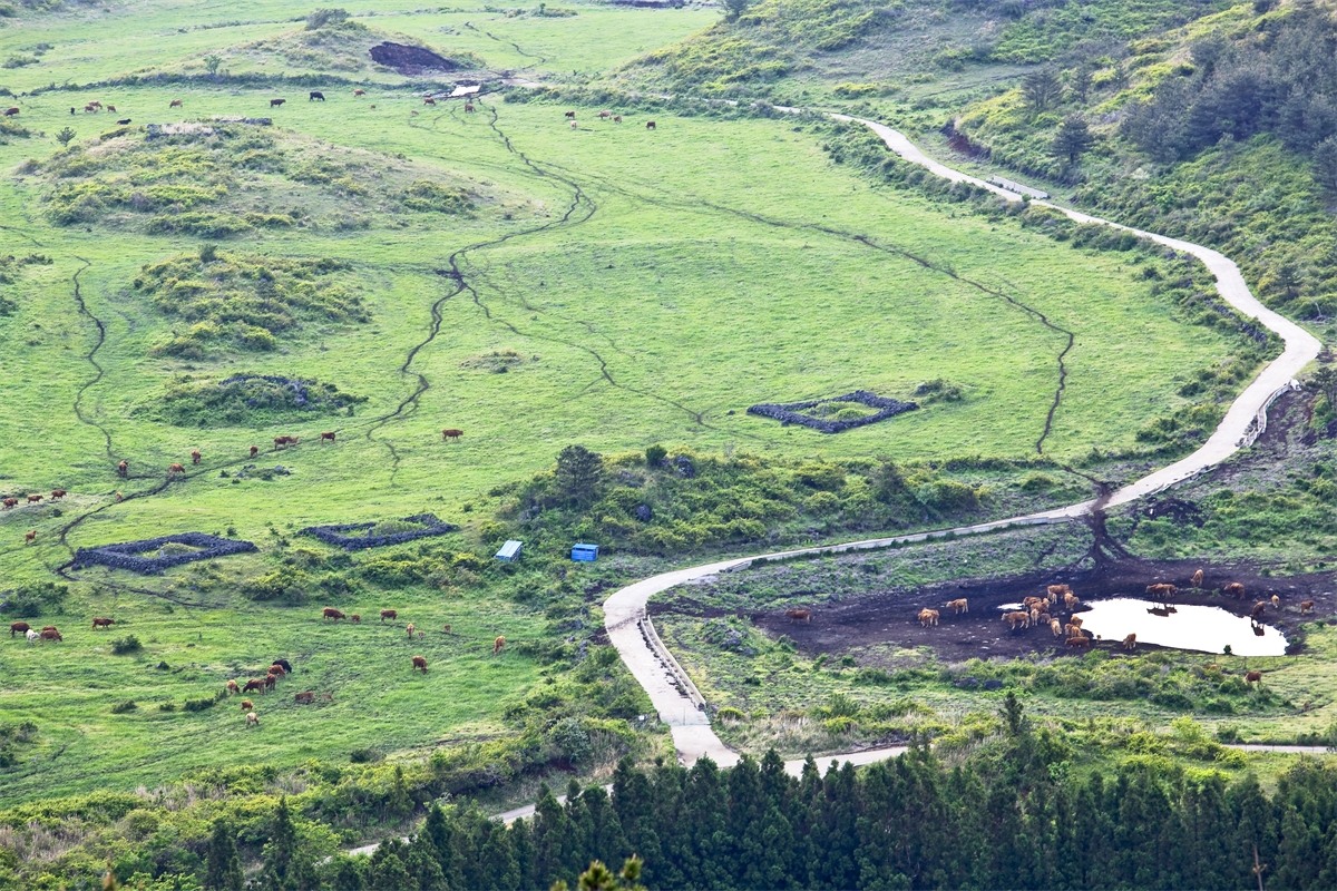제주도 백약이오름에서 바라본 목장풍경