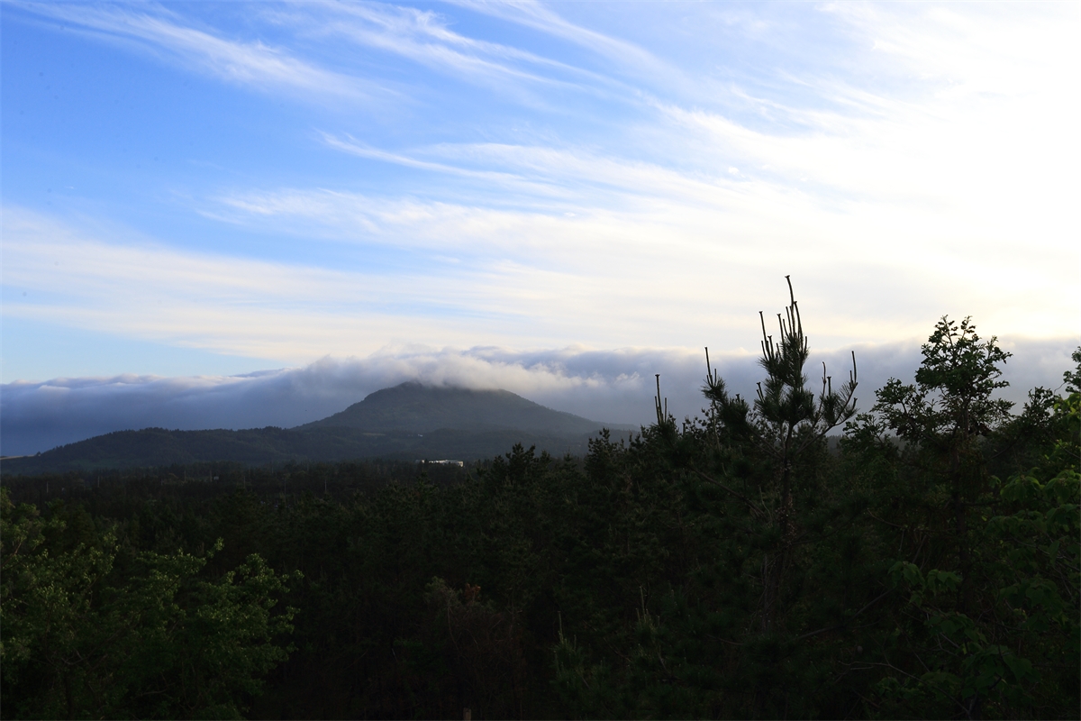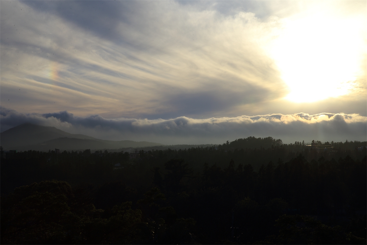 동네에서 저녁 구름이 파도를 일으켰습니다..