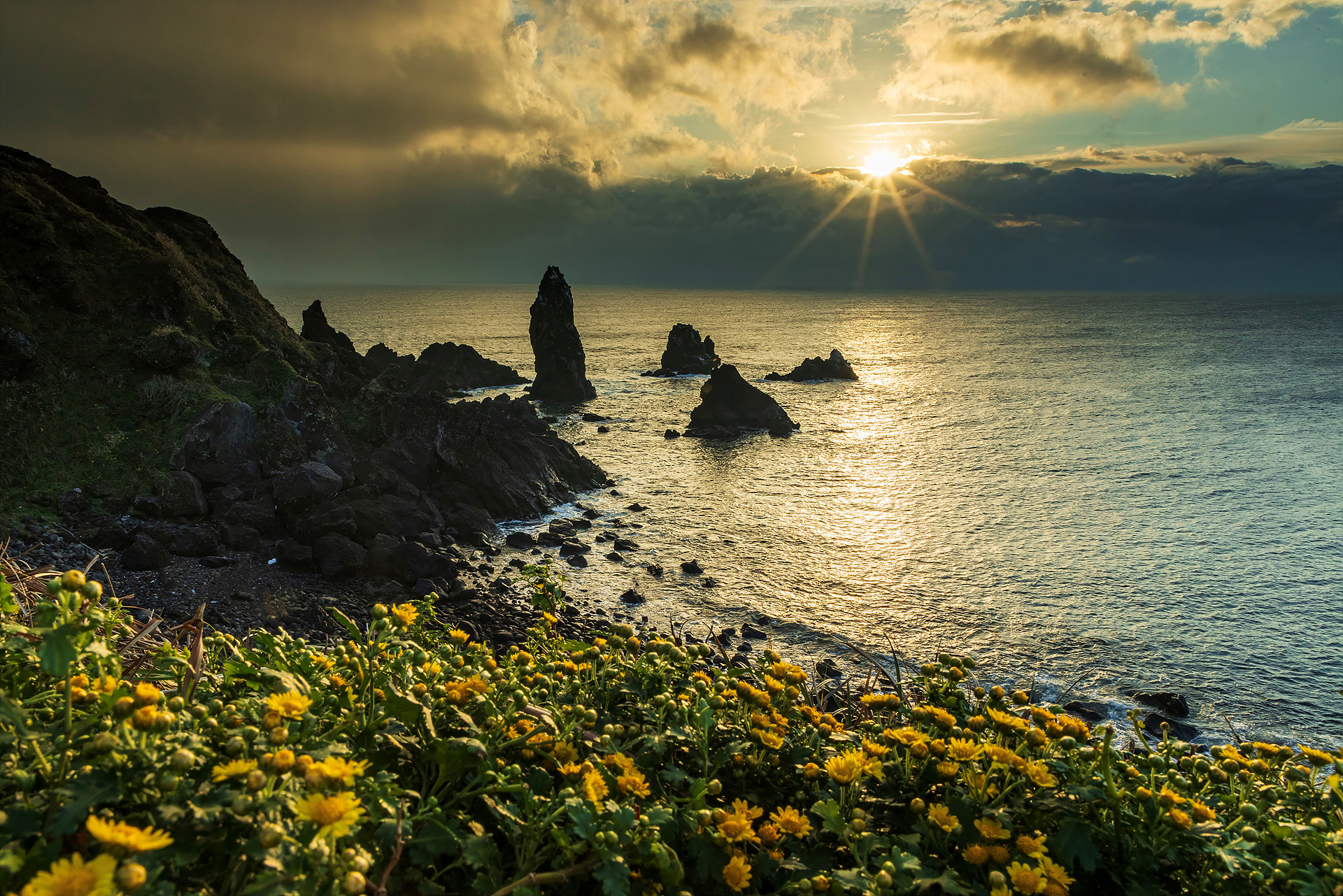 햇살에 감국이 반짝 이는 섭지의 아침