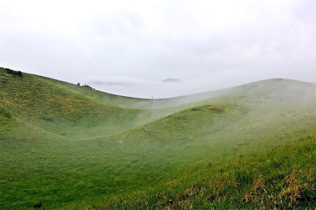 제주도 용눈이오름 분화구와 안개