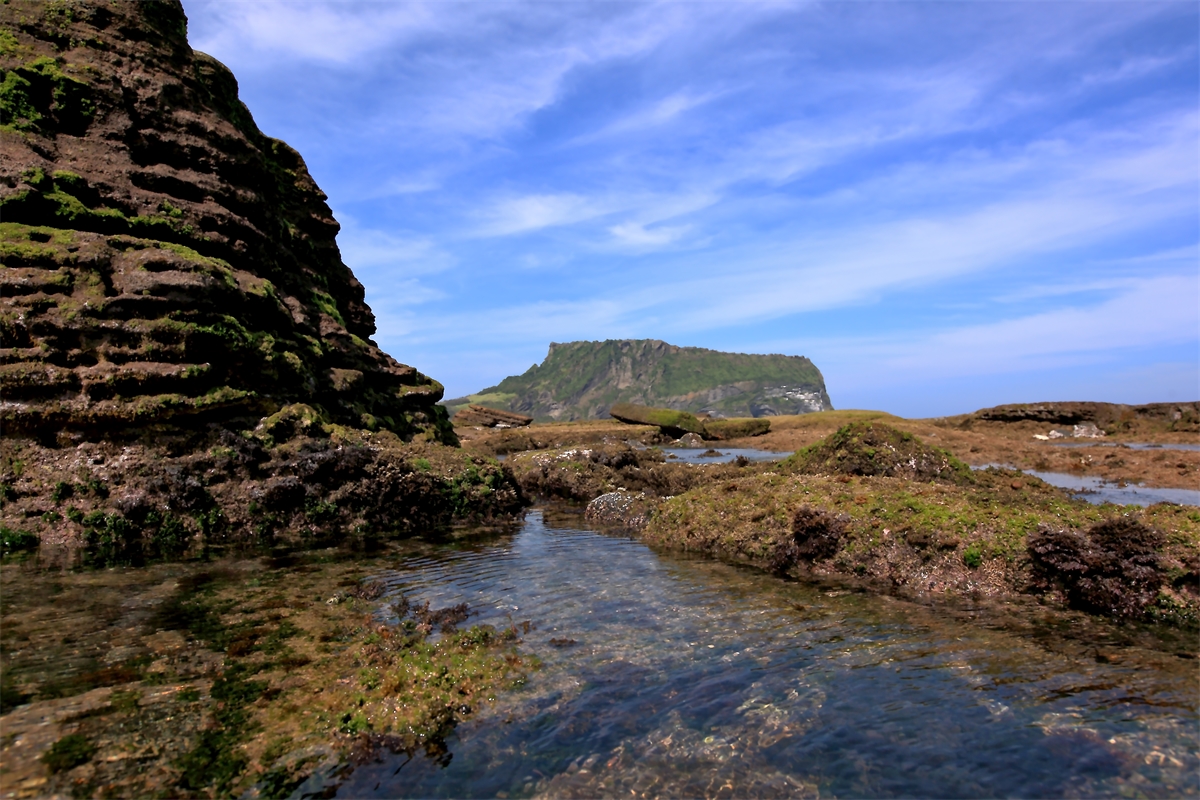 광치기해변의 바위와 일출봉