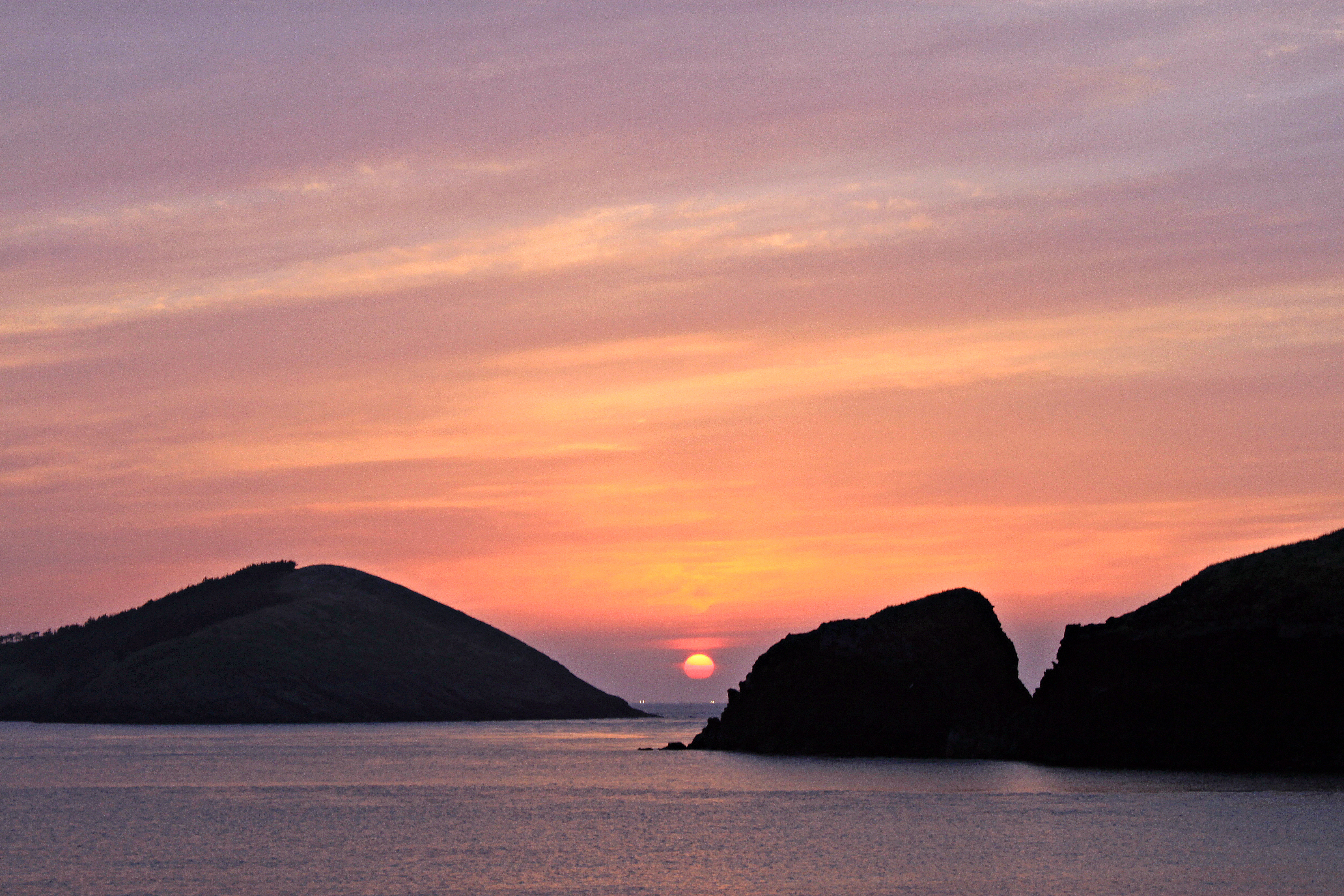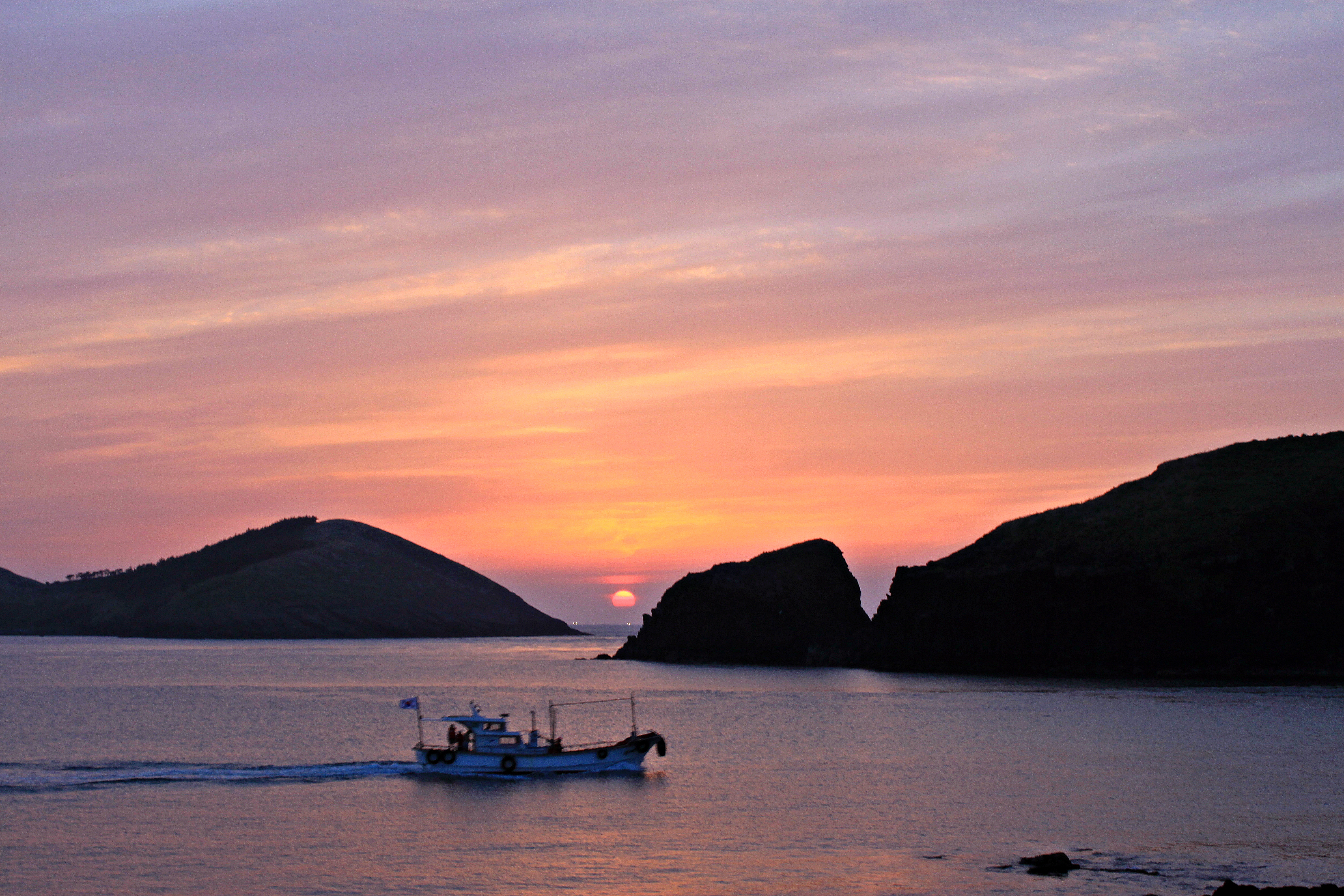 제주도 고산리 차귀도의 노을과 어선의 귀향