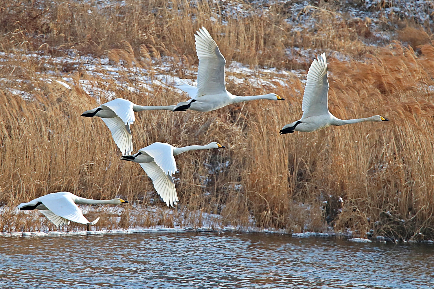 큰고니 가조들이 다음 목적지를 향해 질서있고 힘찬 비행....