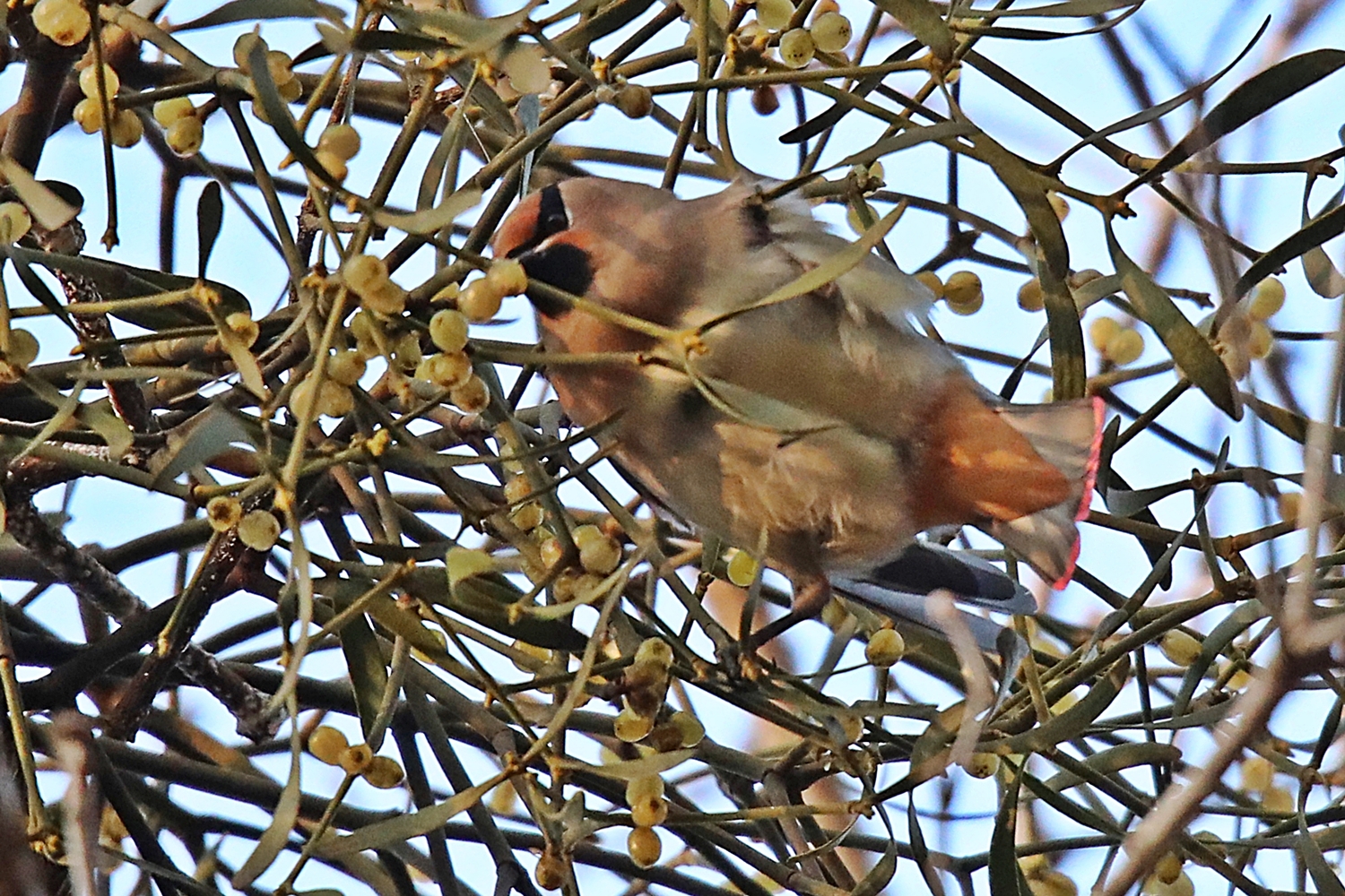 겨우살이 맛집 탐방하는 홍여새