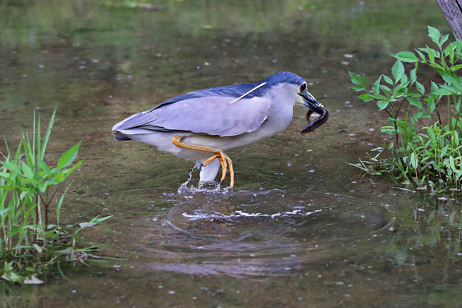 미꾸라지 사냥에 성공한 해오라기....