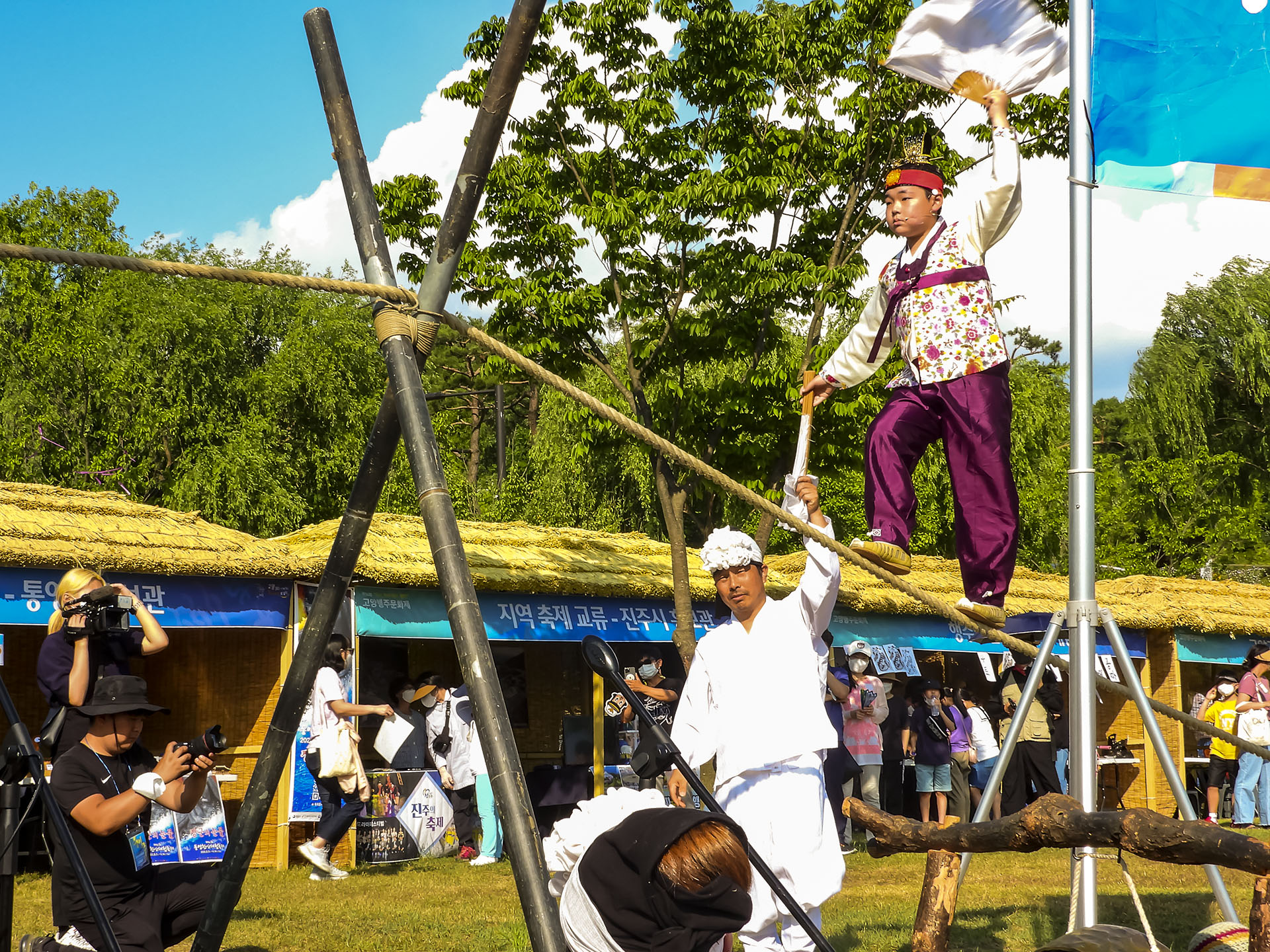 고양 행주문화재에서 10세 초등학생이 외줄타기를 한다