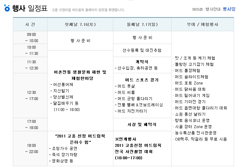 이유 : 제1회로 외국인 선수 초청 시합까지 여러가지 갯벌 축제가 열리므로