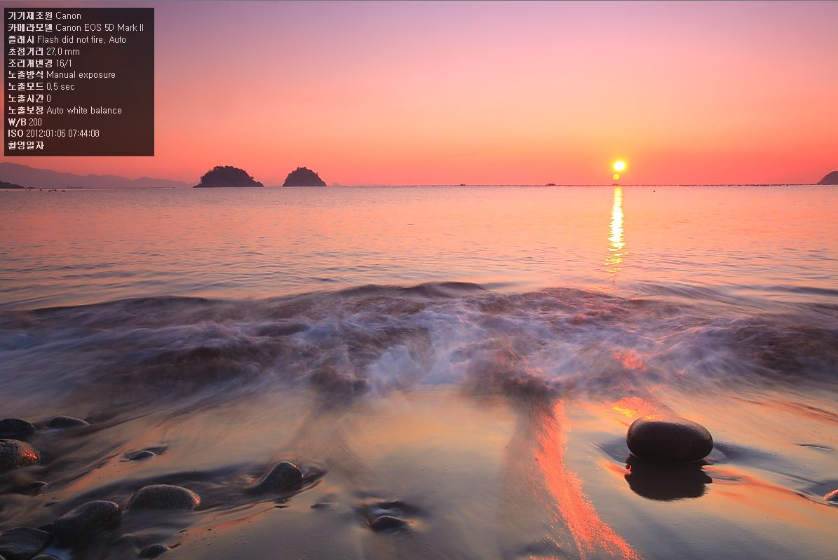 촬영 : 일출과 몽돌(만조시간), 굴전해변 양식장