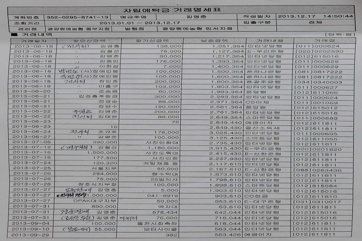 2013년 전남지부 예비 결산서를 첨부파일로 올리니