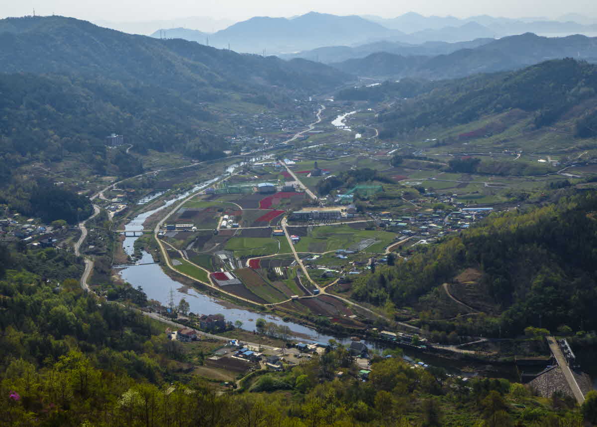 뽈록산 정상에서 바라본 조절지 댐의 풍경...