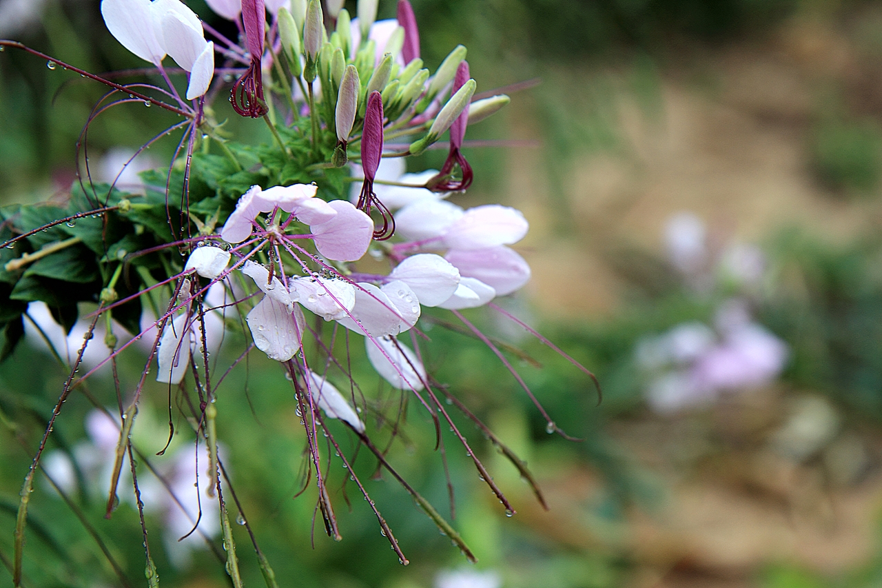 여름의 아침비를 맞은  풍접초