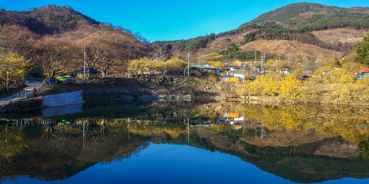 산수유가 피는 마을의 반영입니다