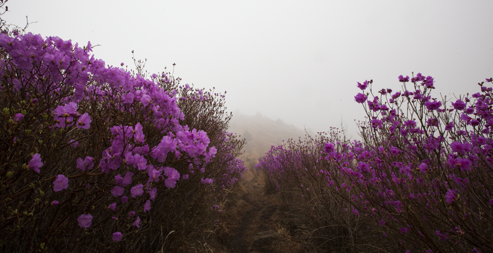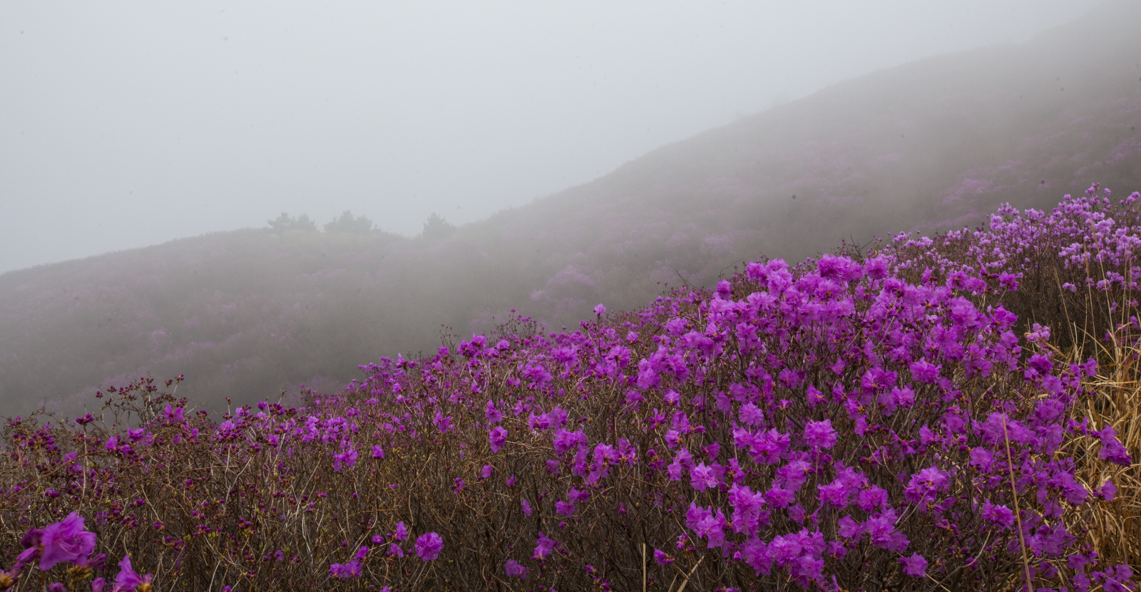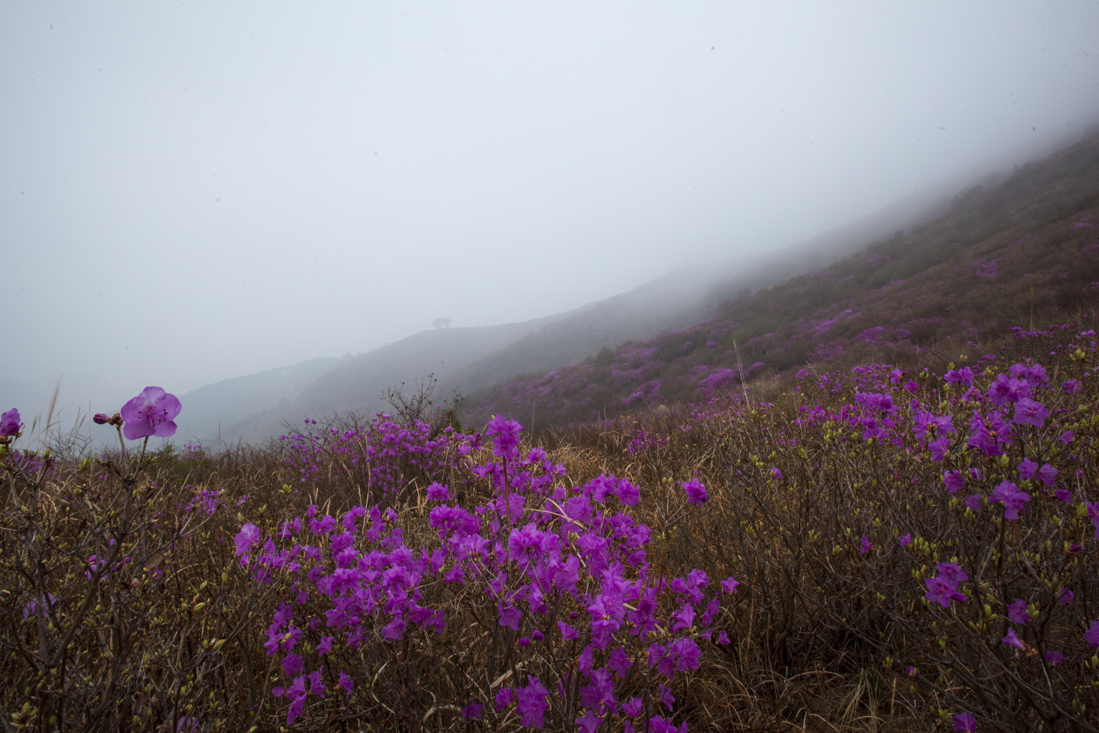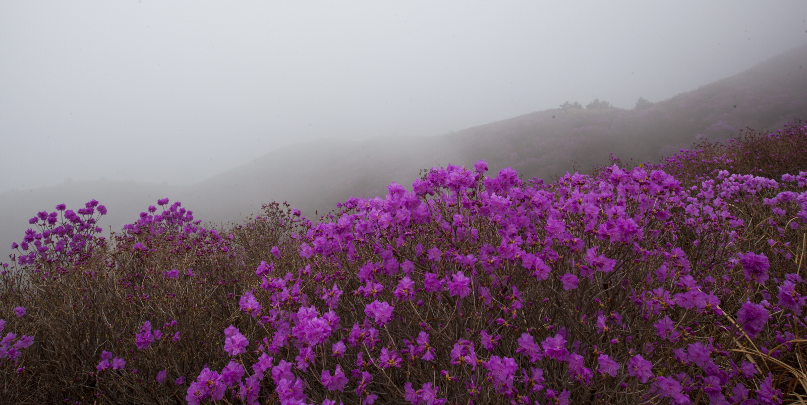 안개 자욱한 영취산 진달래입니다.