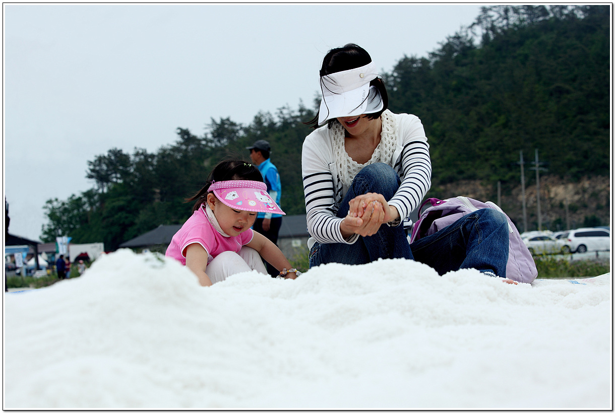 소금놀이로 시간을 보내는 딸과 어미는