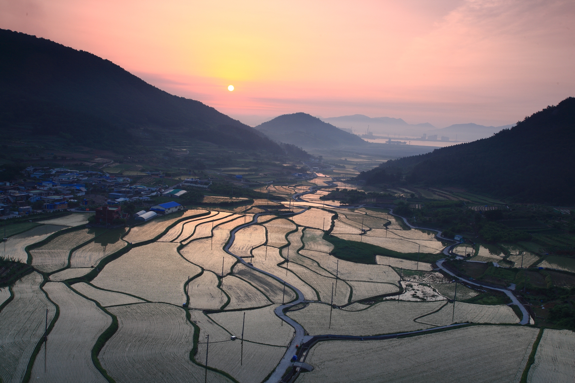 묘도 다랭이논의 일출입니다.