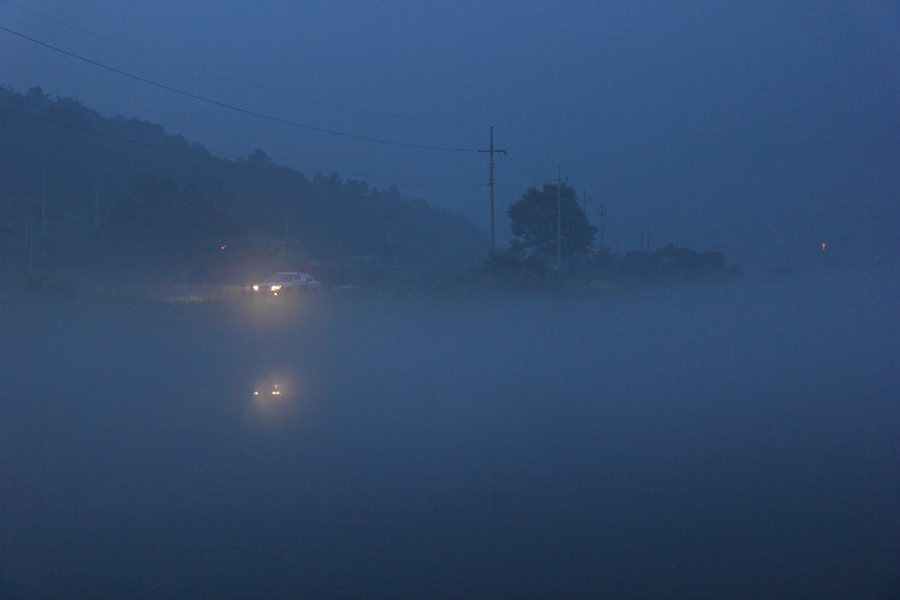 저녁무렵 이사천에서의 물안개 풍경