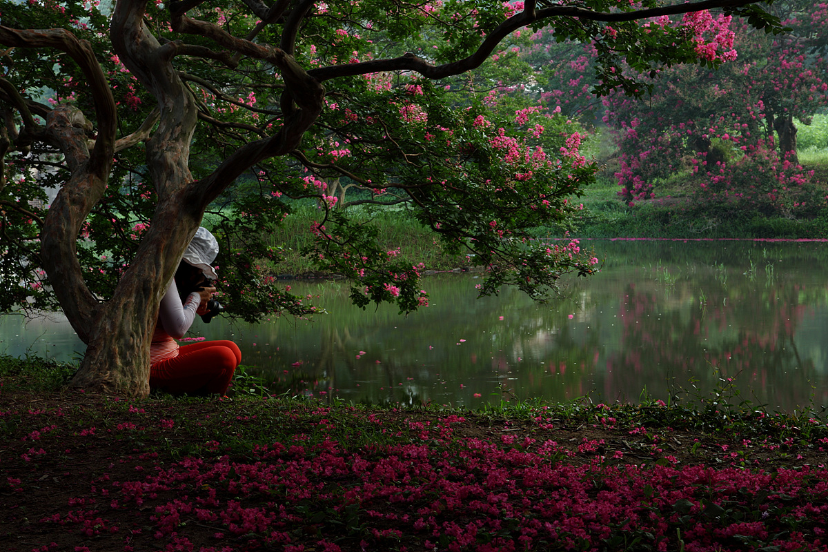 백일홍 꽃잎에 유혹되어 자화상을 그려 봅니다.