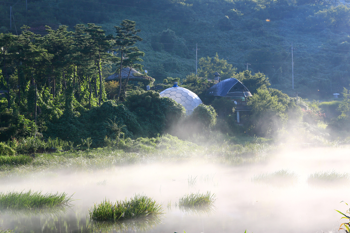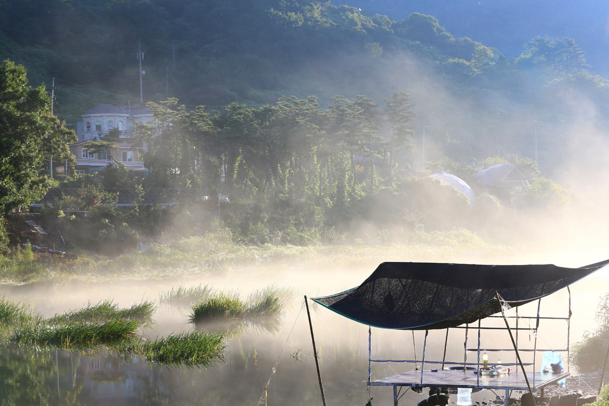 물안개는 해와 함께 순식간에 사라지고