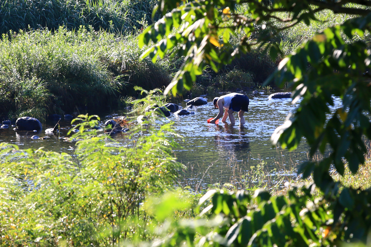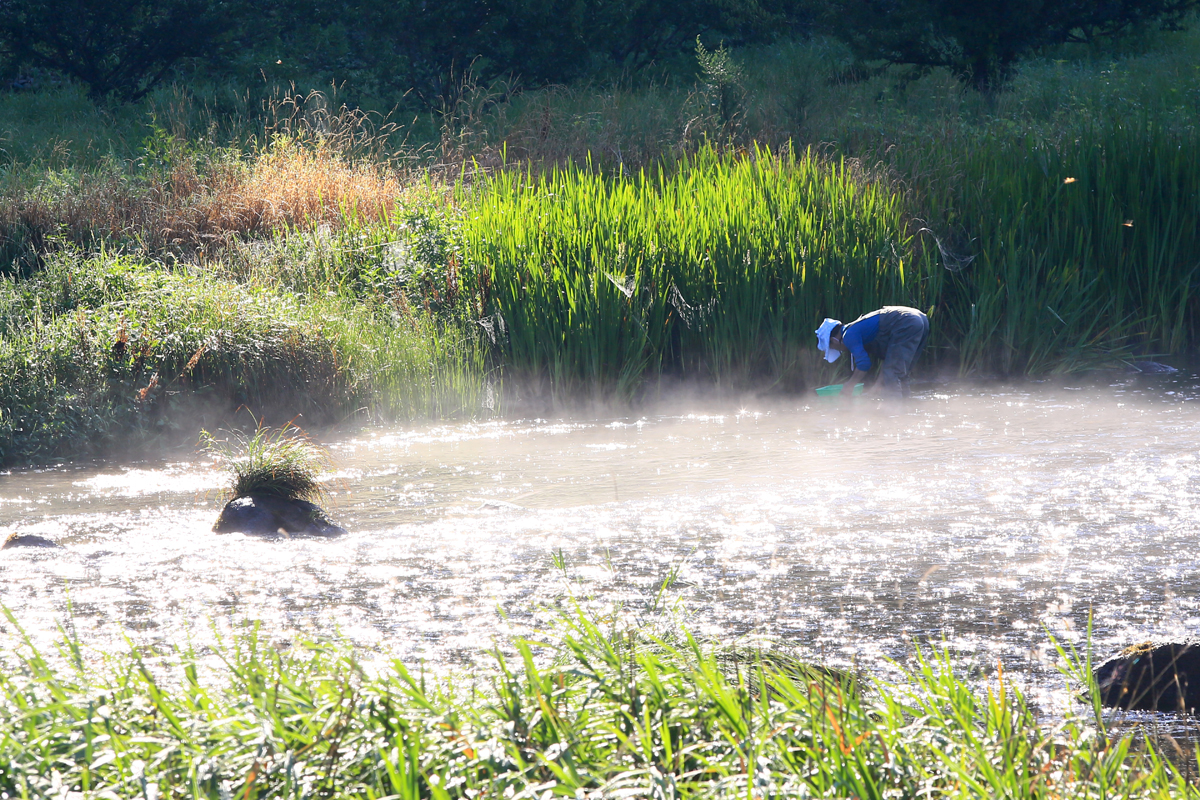 차가운 물속에서 다슬기 잡는 사람들이 많았다,