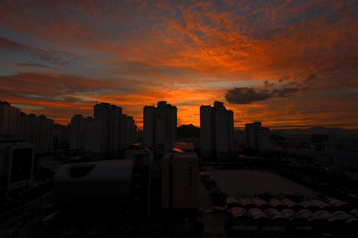 태풍 "다니스" 가 불어 닥치기 전날 아침의 여명