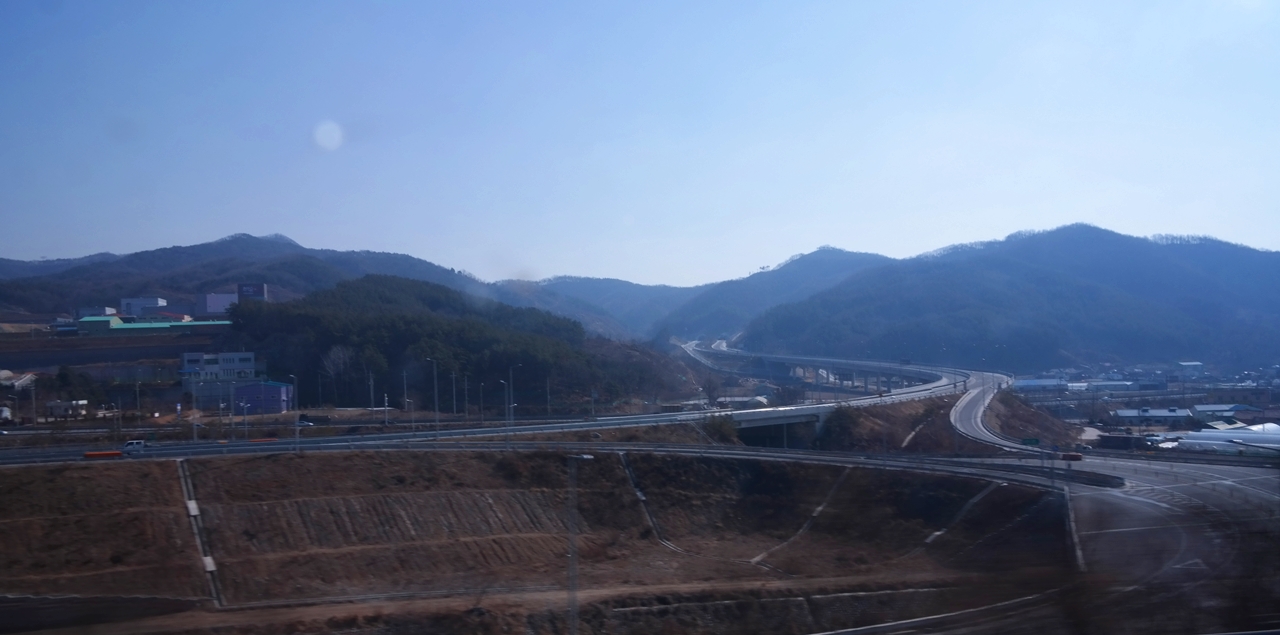 버스를 타고 가면서 풍경을 바라봄니다