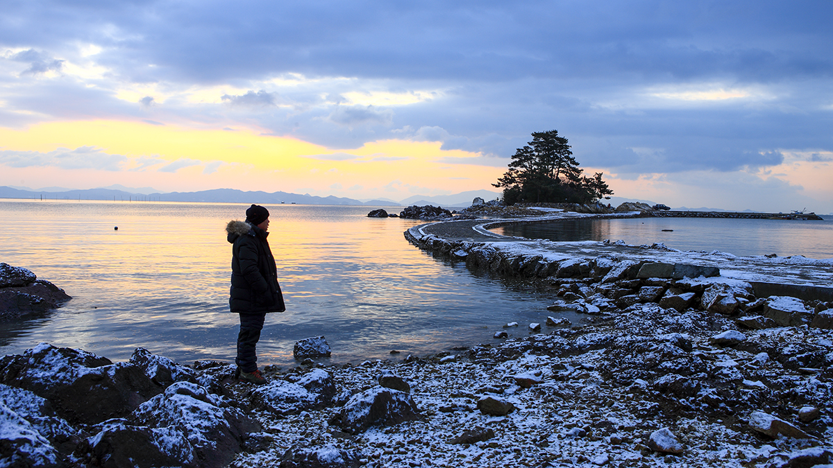 소등섬에 눈이 내려습니다.