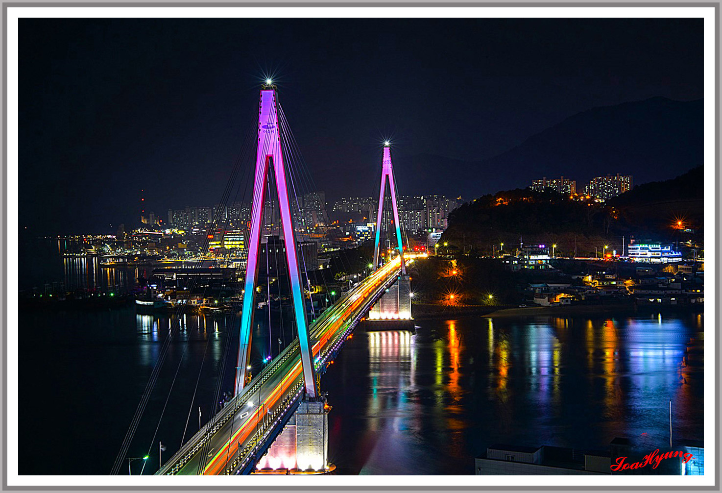 여수의 명물 돌산대교의 야경입니다.