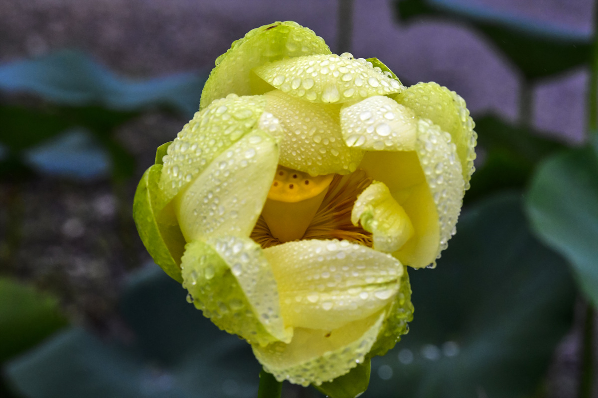 비오는 날 부여 궁남지에서 희귀한 황금련을 담다.