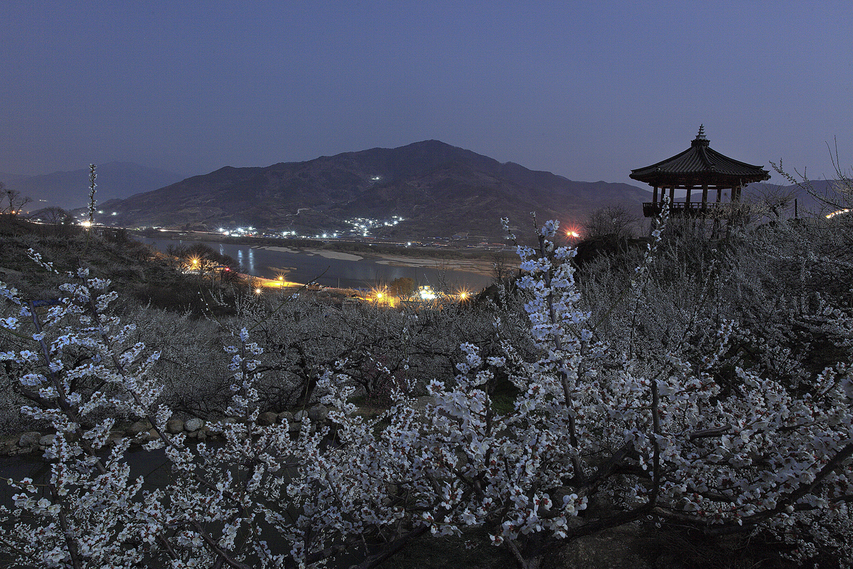 불빛을 머금은 매화마을의 모습