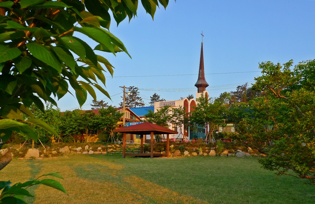 점점 더 녹색으로 물들어가는 시골교회