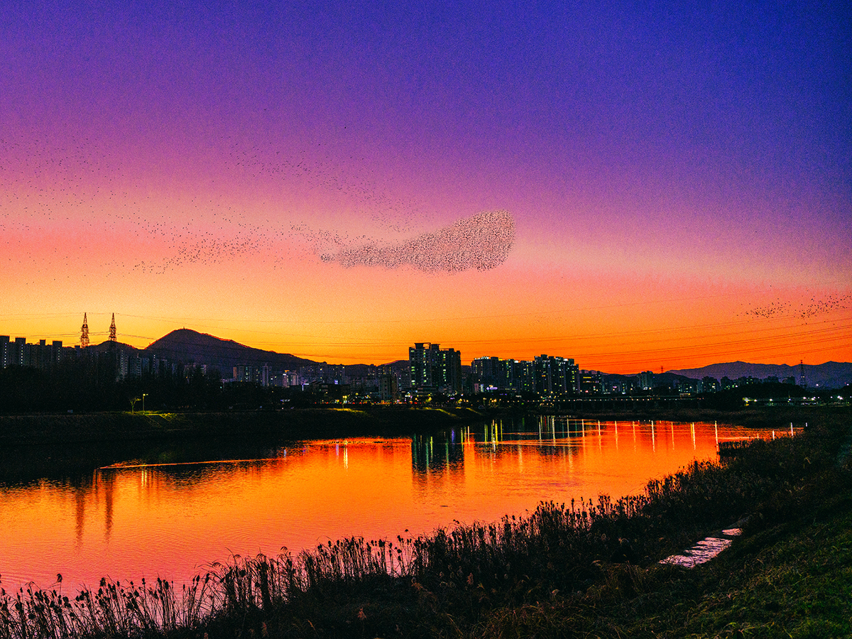 태화강 까마귀 군무
