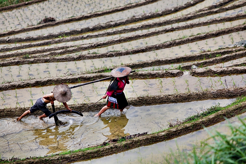 다랭이 논과 농부