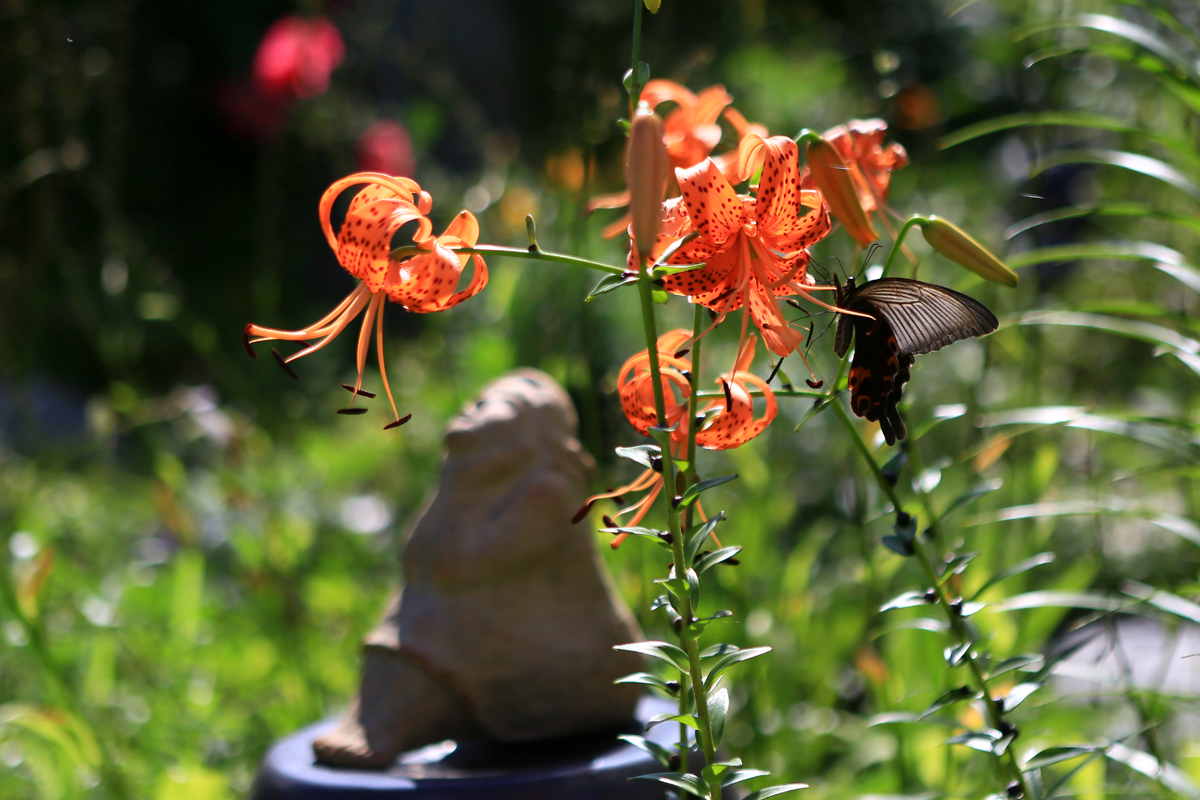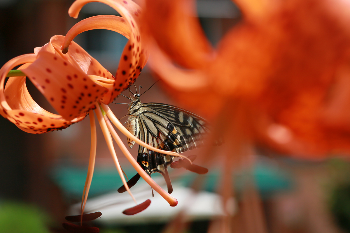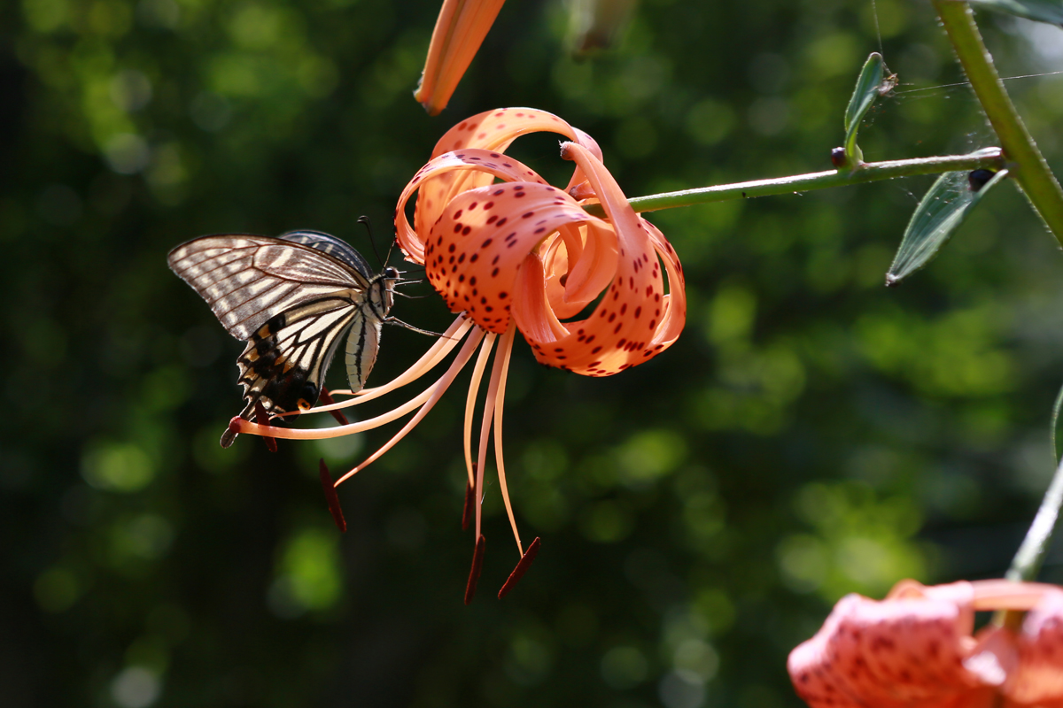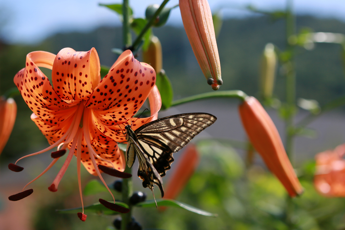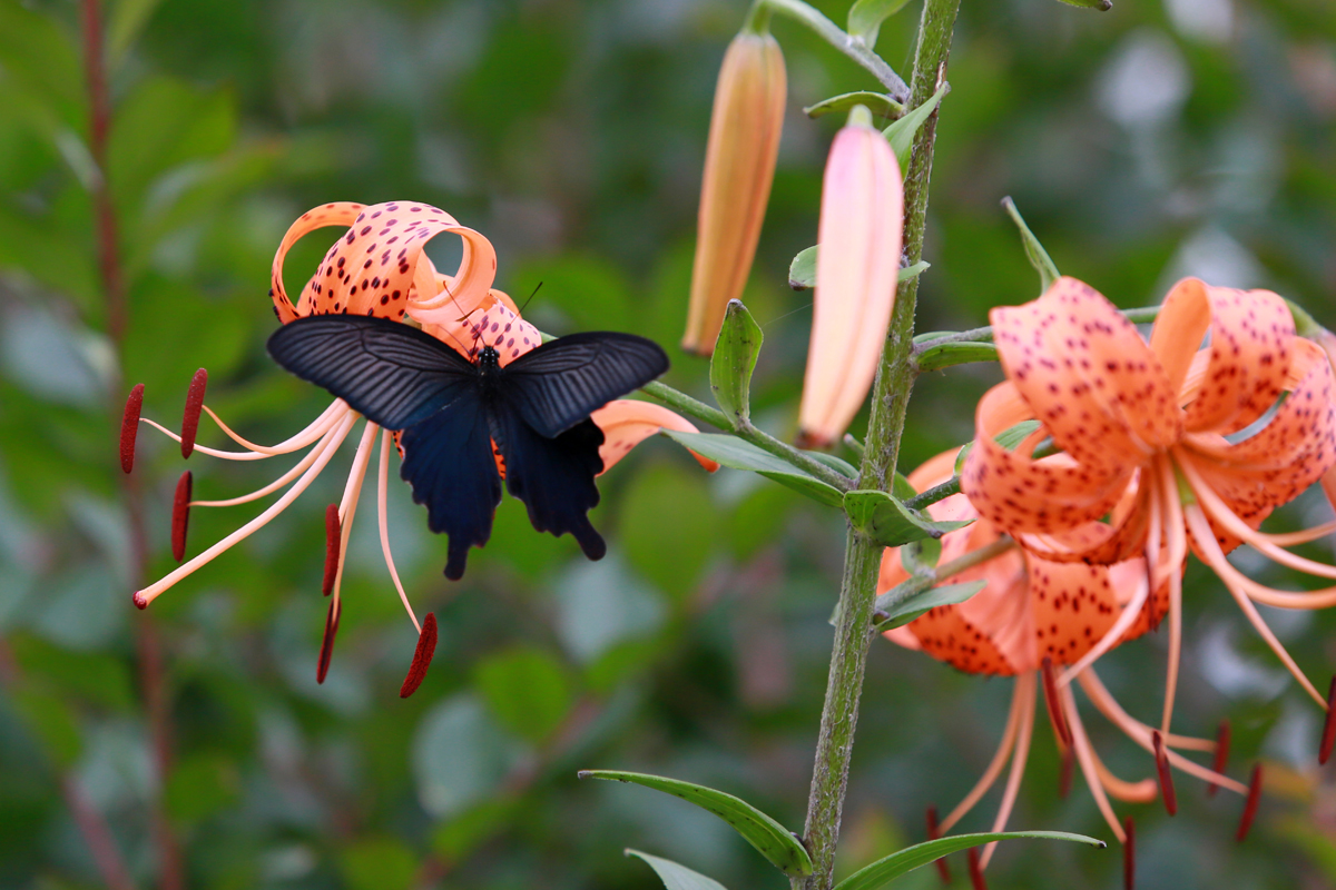 참나리에 앉아 호랑나비와 제비꼬리 나비가
