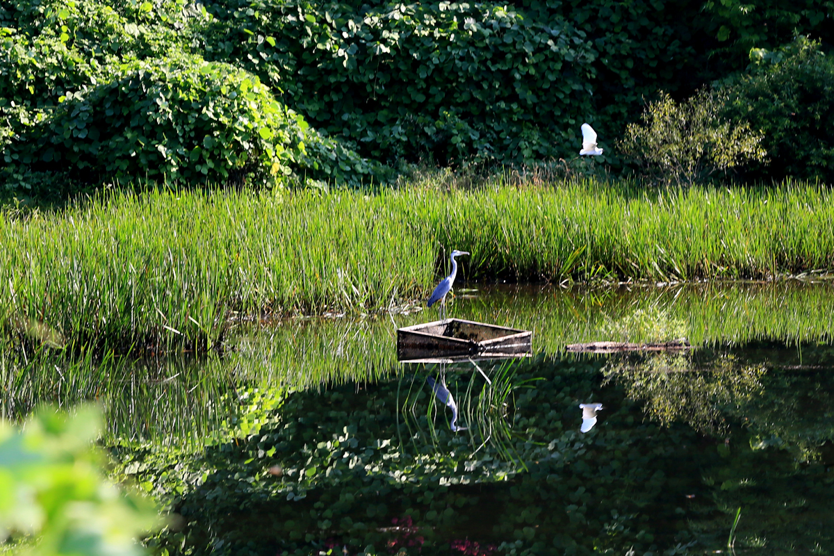 천변의 아침은 한가로운 가운데