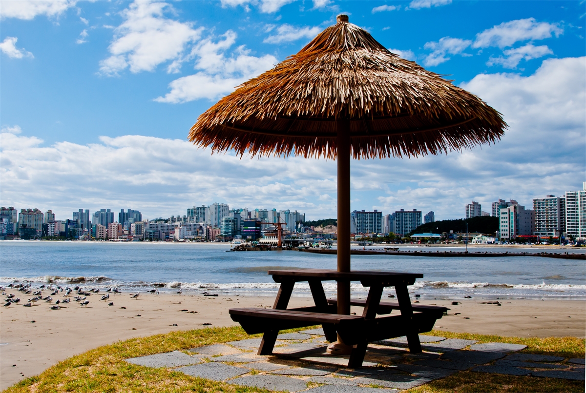 구름이 좋던날 포항 해변의 아름다운 풍경