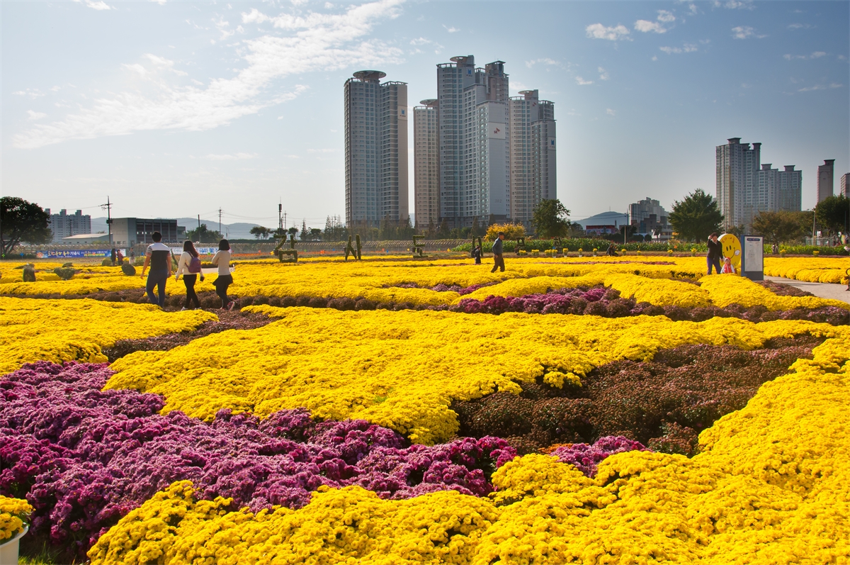 포항시 하수정화시설 단지를 국화꽃 동산으로 바꿔났읍니다