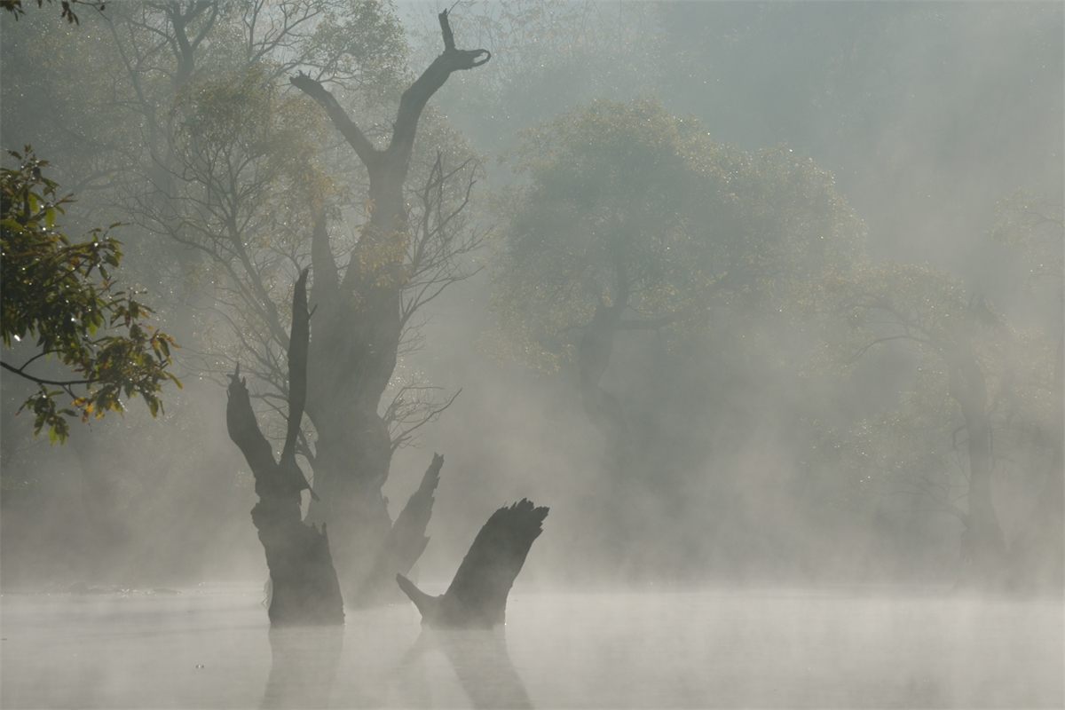 물안개 주산지 흑백처리