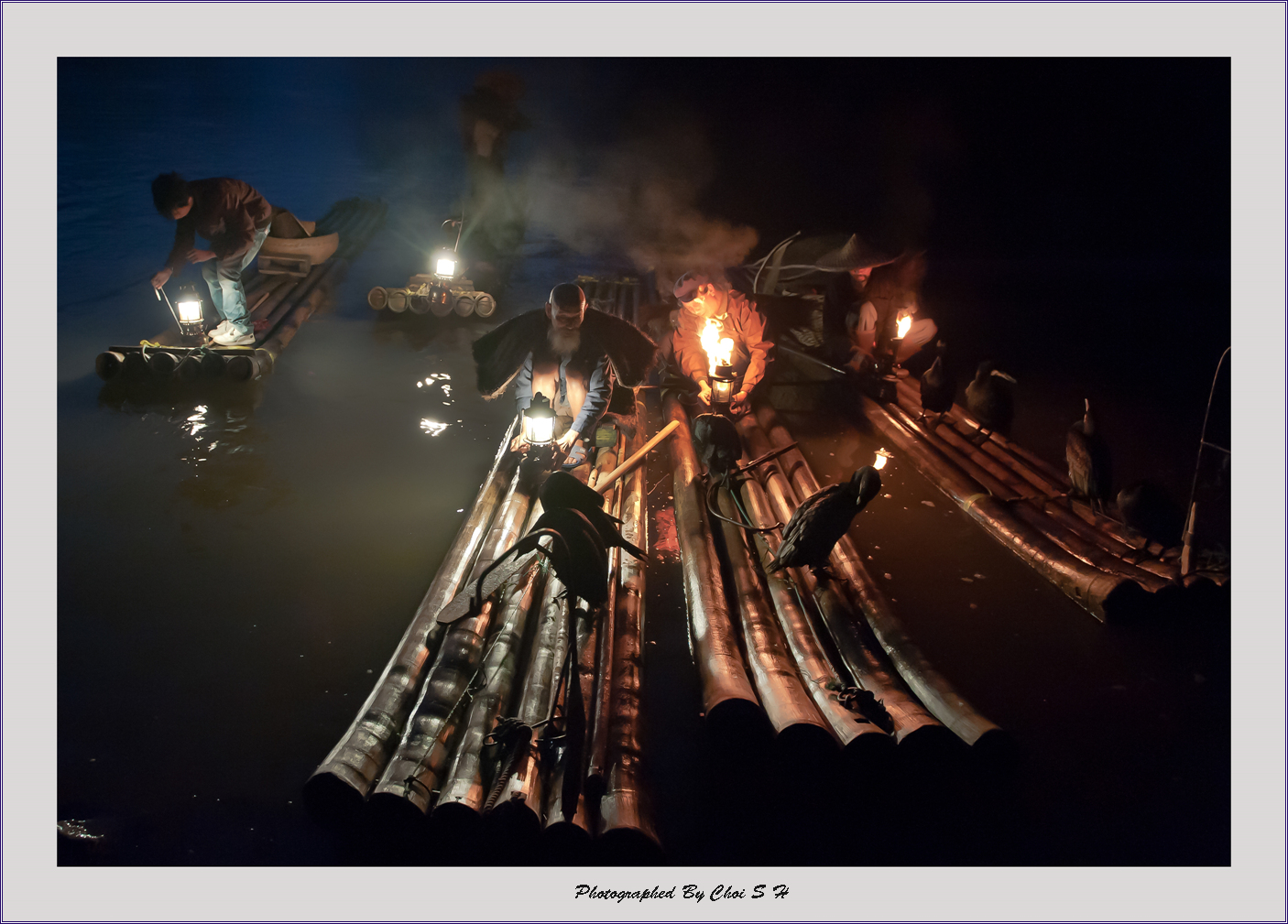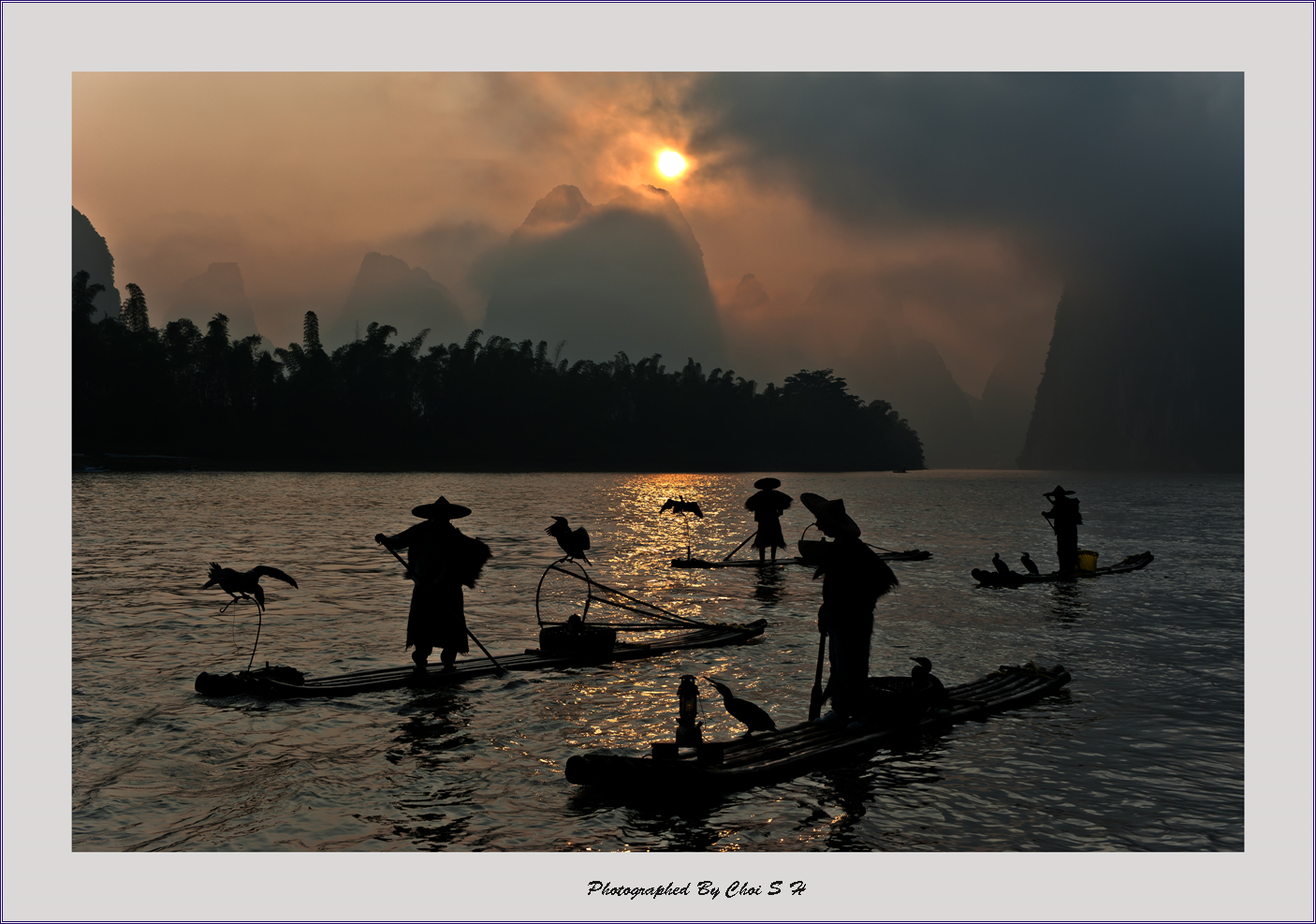 리강에서 가마우지 낚시하는 사람들..