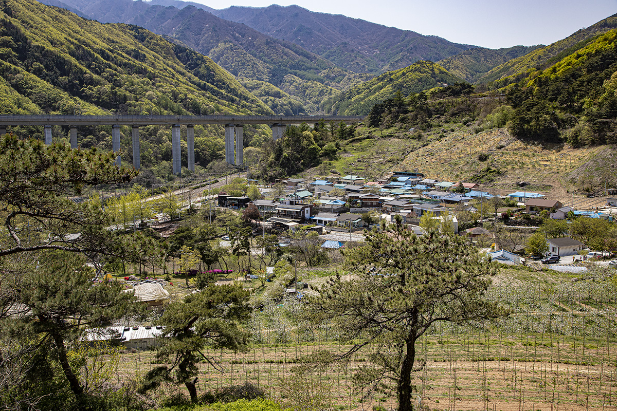 희방사역이 보이고 죽령으로 올라가는 중앙고속도로가 보이는 마을이 경북 영주시 풍기읍 수철리입니다.
