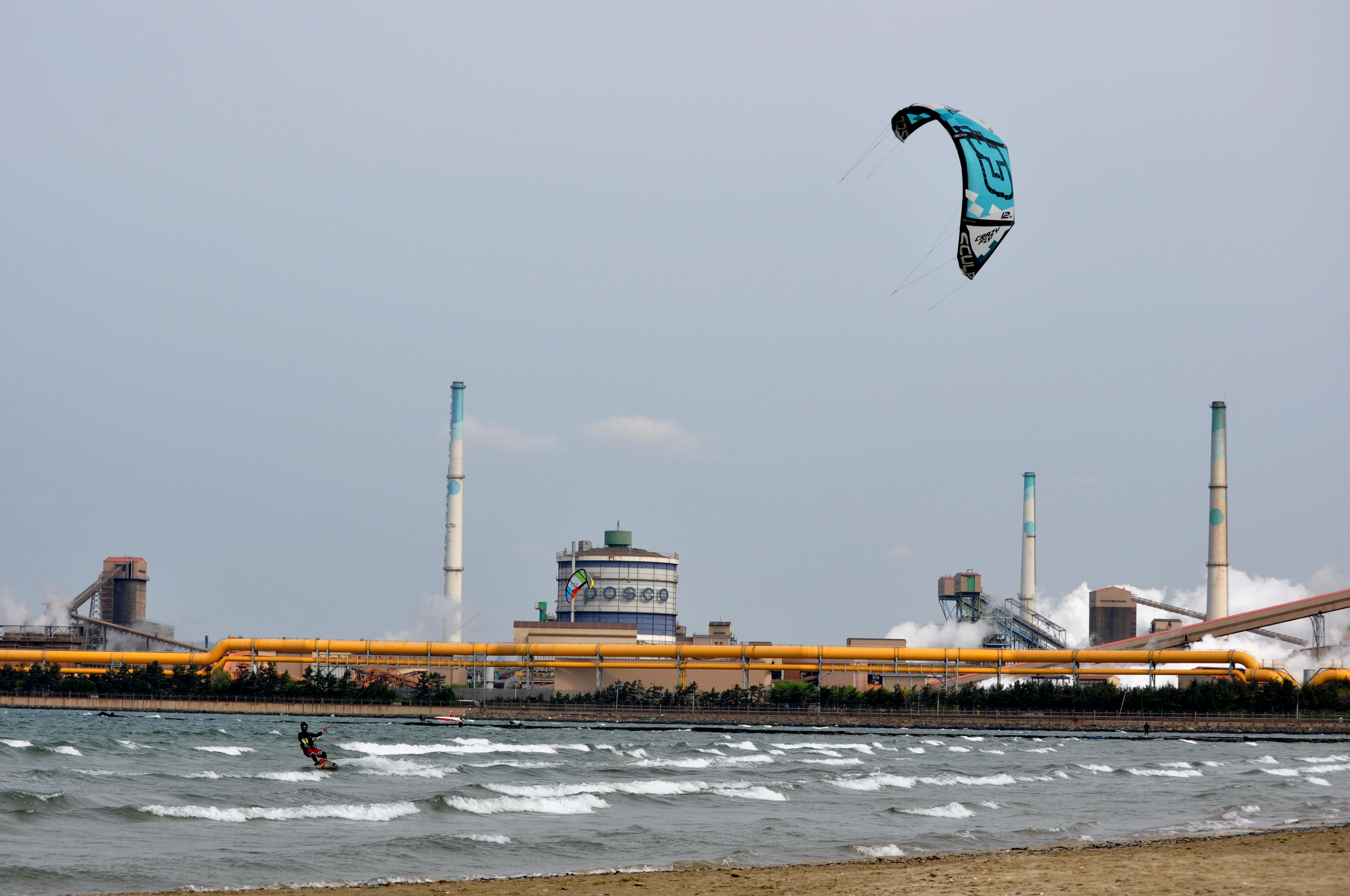 카이트 셔핑이 파도를 가르고....