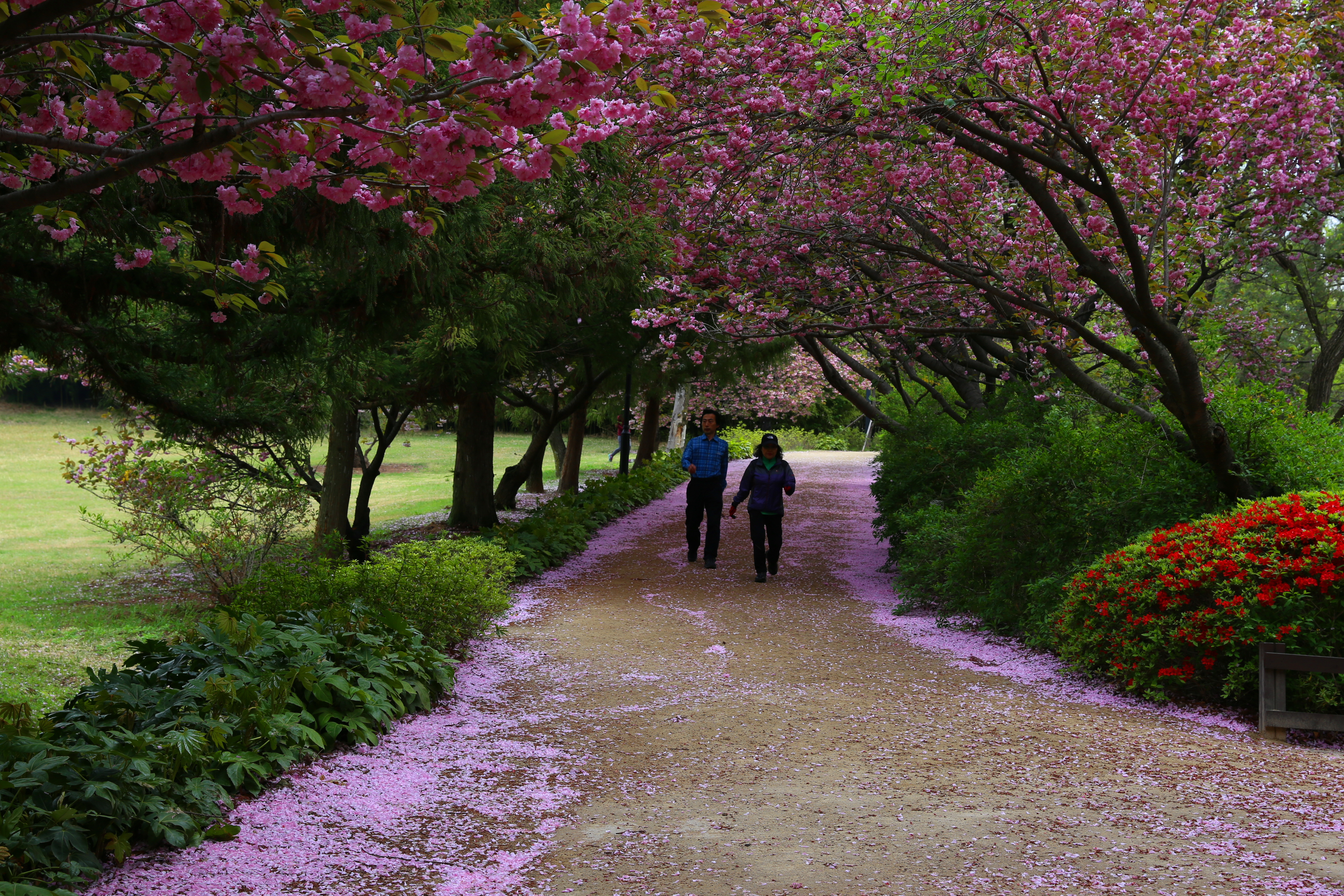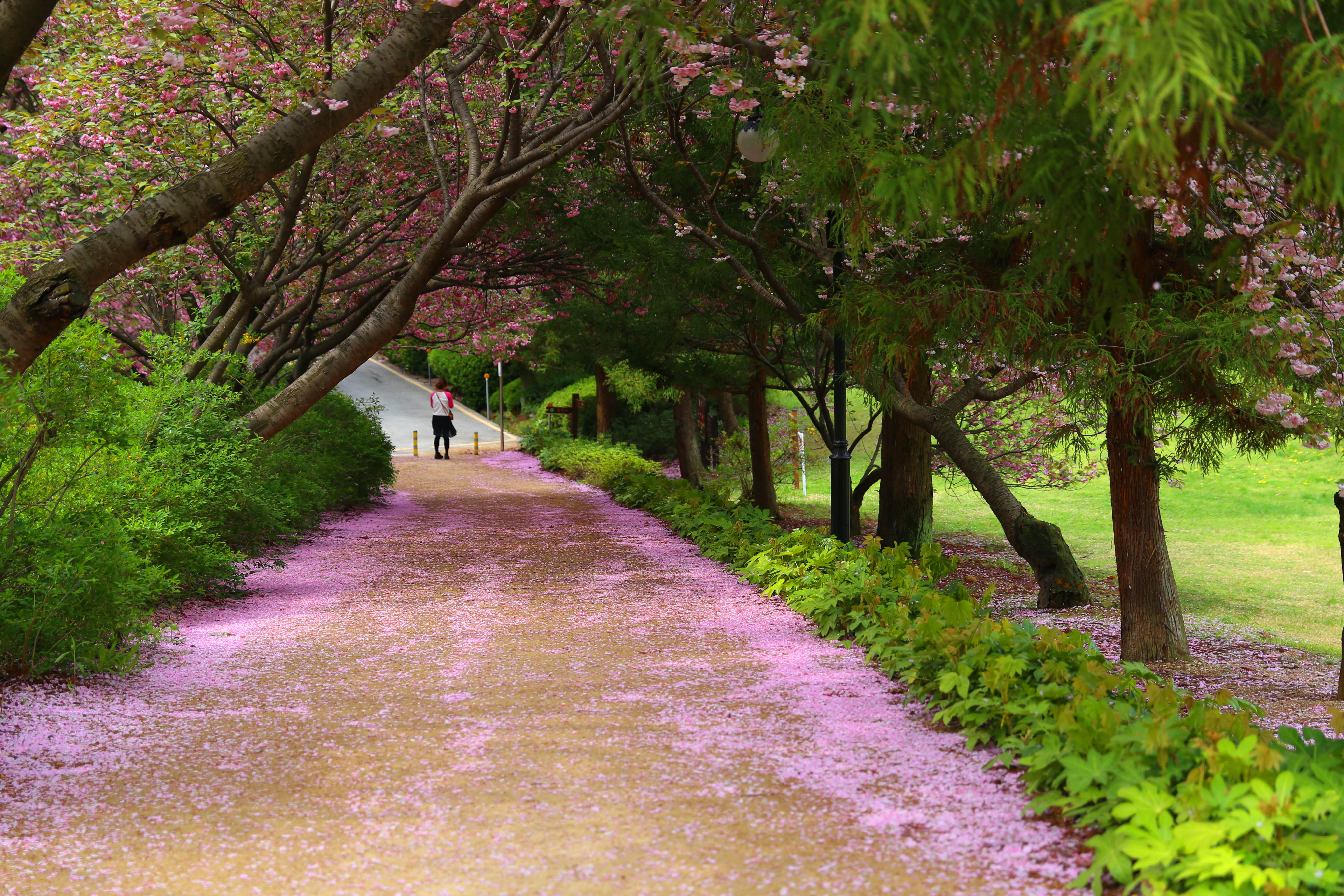 영일대 둘레길에 왕벗꽃잎이 떨아져