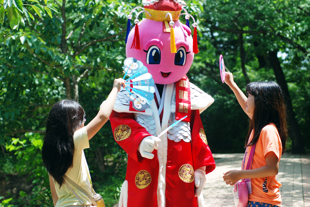 더운 날씨.. 탈을 쓰고 있는 모습이 안쓰러워보였는지 애들이 부채질을 해주고 있는 모습이 인상적이었습니다.