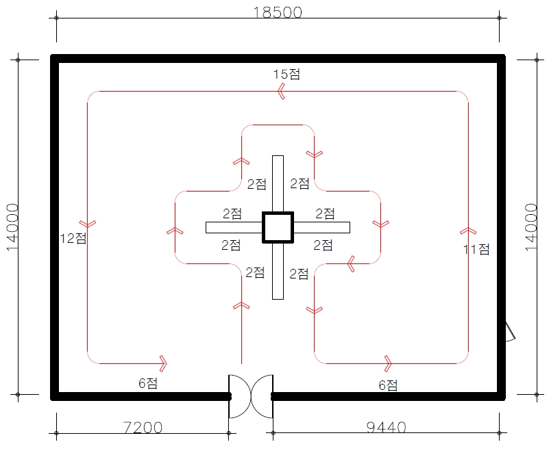 위와 같이 현장조사를 통하여 배치도를 작성하였습니다