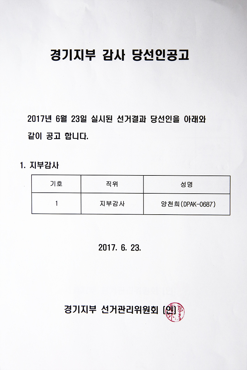 [2] 경기지부 감사 당선인 공고