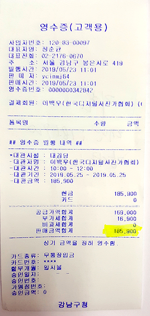 1) 대관료 : 185,900원