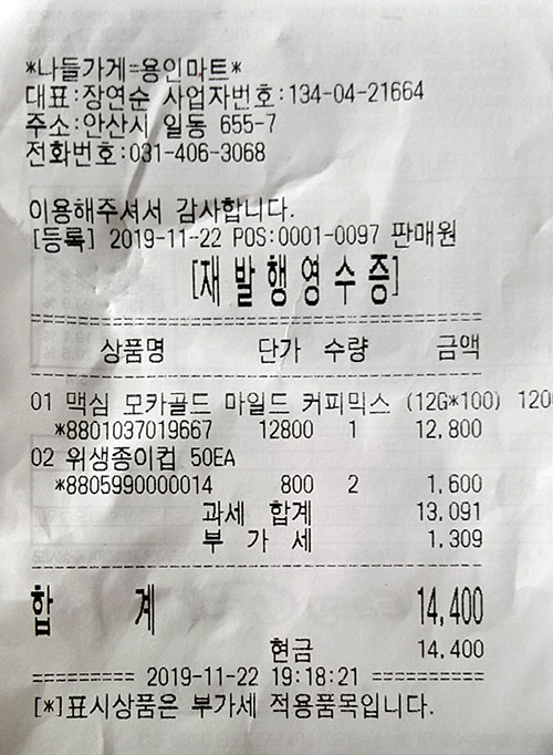 커피영수증